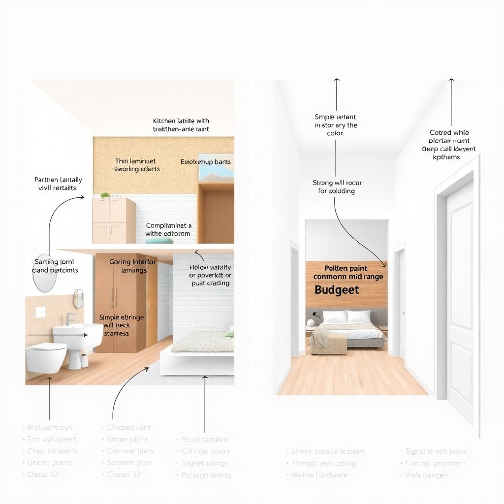 Пожалуй, самый разумный подход в 2025 году — комбинированный. Полностью премиальный ремонт потянет далеко не каждый, а полностью бюджетный часто оборачивается ремонтом через 3–5 лет. Поэтому логично распределить деньги так: в критические зоны (влажные помещения, полы в проходных, кухня) закладываем материалы на уровень выше, а в менее нагруженных помещениях выбираем эконом или средний сегмент. Такой подход создаёт баланс между стоимостью и комфортом: вы не переплачиваете за шик в кладовке, но и не рискуете ванной комнатой из дешёвых смесей.